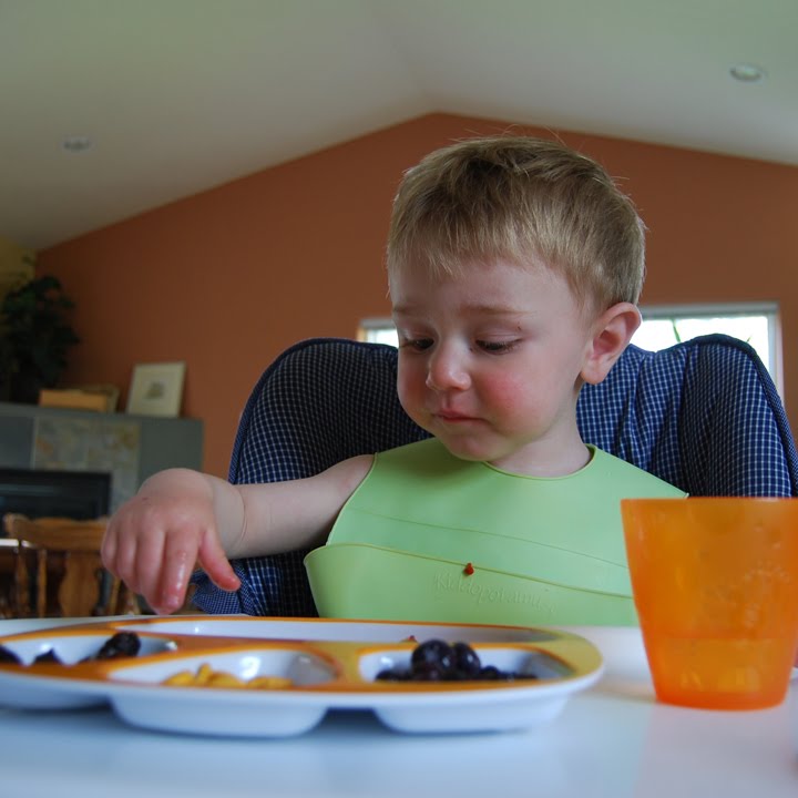 And here is Jackson eating dinner tonight. First time with his new plate! He did very well. He wanted to pick it up a couple times, but I held it down.